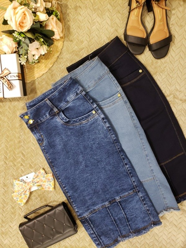 Nuevo Ingreso en falda de jeans recta. De jeans elastizado.