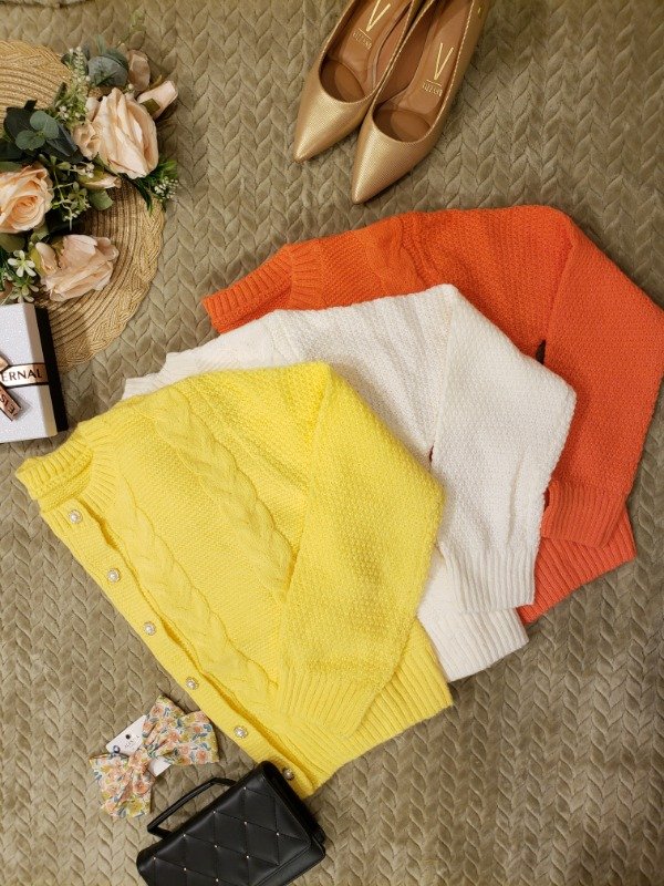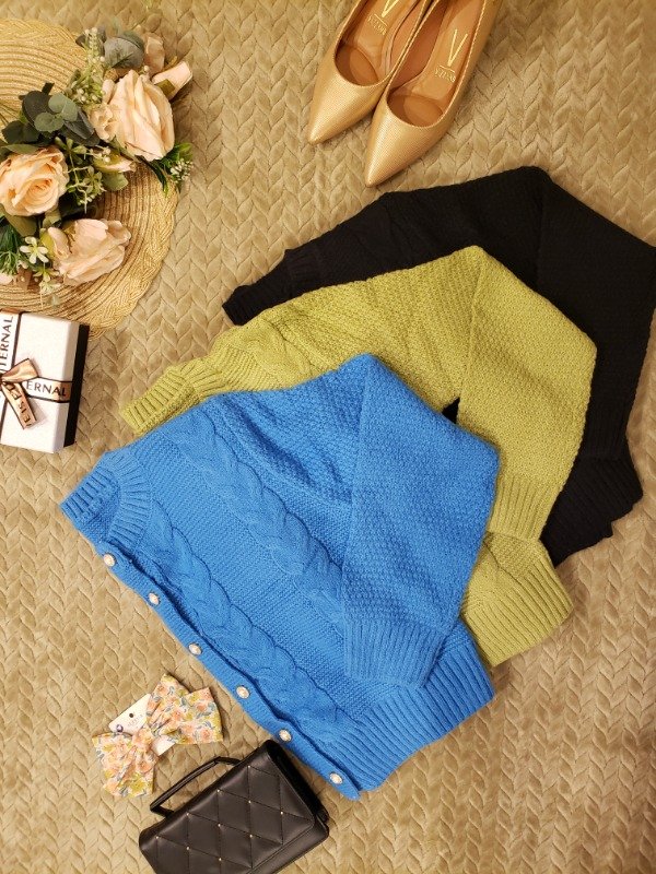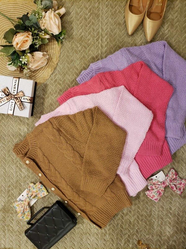 Nuevo ingreso en suéter tejido con hermosos botones dorados.
