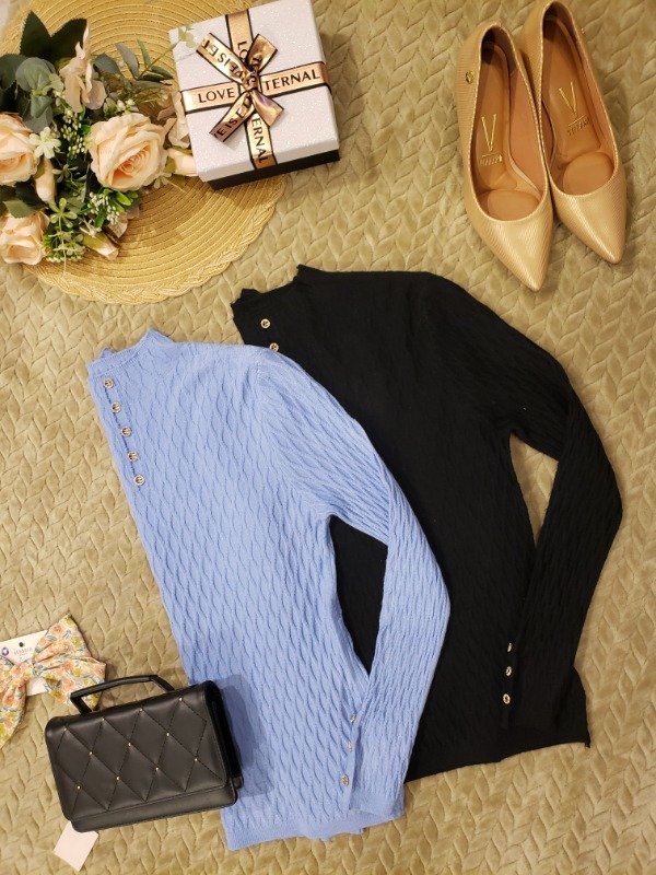 Nuevo ingreso en sueters importados. De hilo spandex. Con hermoso relieve y botoncitos dorados.