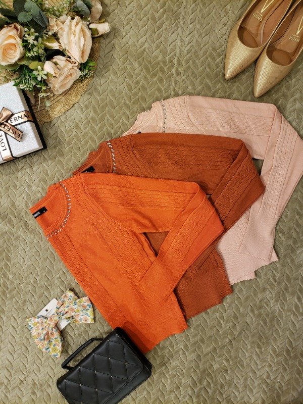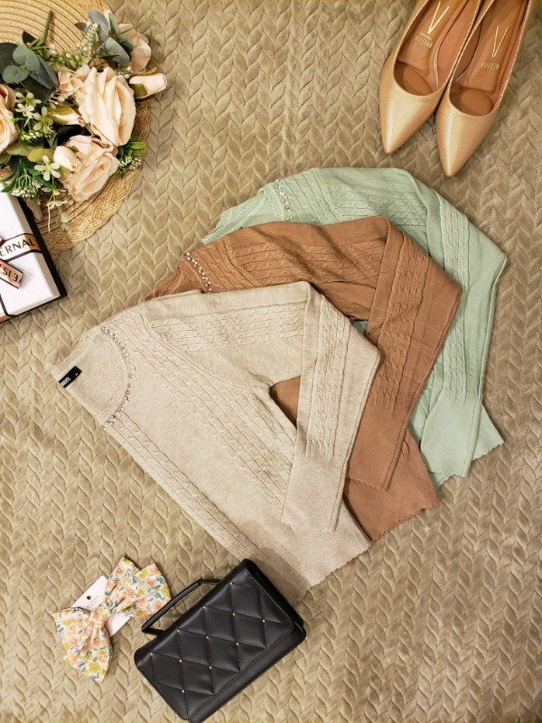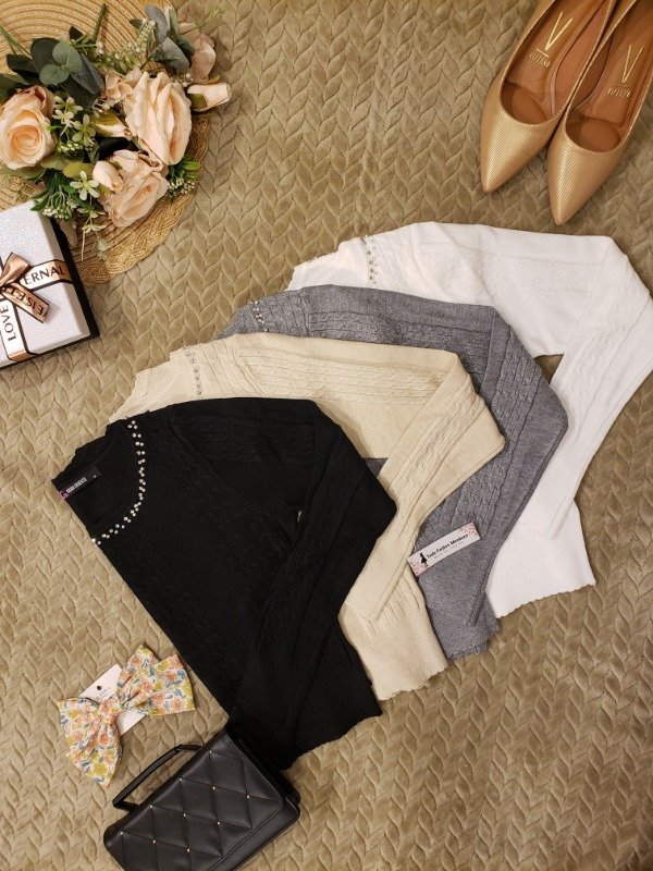 Nuevo saquito de hilo con cuello redondo, y hermosos brillos en el. Modelo importado. Corto.
